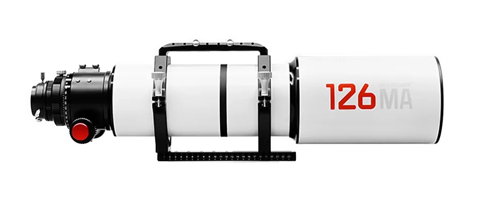 The Sky Rover 126MA is a multipurpose astrograph designed to combine astrophotography capability with the flexibility of a more traditional refractor. Its optical system integrates a triplet objective lens with an internal field flattener in a unified design, creating a native flat field that supports full-frame imaging directly at prime focus.