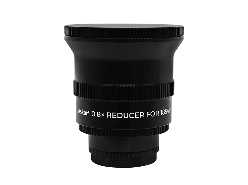 The 185APO 0.8x full-frame reducer brings the focal ratio down to f/5.6. Quadruplet design with superior field flattening for 44mm full-frame imaging. Standard 55mm back focus with built-in 2" filter thread.
