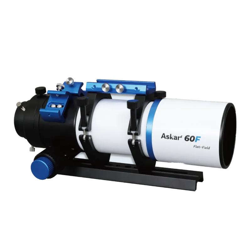The Askar 60F 0.75x reducer is specifically optimized for the Askar 60F, reducing the focal ratio to f/5.1 for faster imaging. This triplet optical lens design supports a 44mm full-frame image circle and incorporates field-flattening correction capabilities. The faster focal ratio provides a wider field of view and shorter exposure times, making it particularly suitable for capturing large nebulae, dense star clusters, and faint or fast-moving celestial objects. Standard 55mm back focus from M48 thread with M50x1 threads on both ends for easy integration.