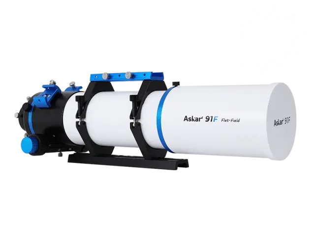 The Askar 91F 0.75x reducer brings the 91F focal ratio down to f/5.2, providing a wider field of view and faster exposure times. This triplet design reducer supports a 44mm full-frame image circle and includes field flattening capabilities, making it ideal for capturing large nebulae, star clusters, and faint, fast-moving celestial objects. Standard 55mm back focus from M48 thread with M59x1 threads on both ends. The included adapter has built-in M48x0.75 2" filter thread.