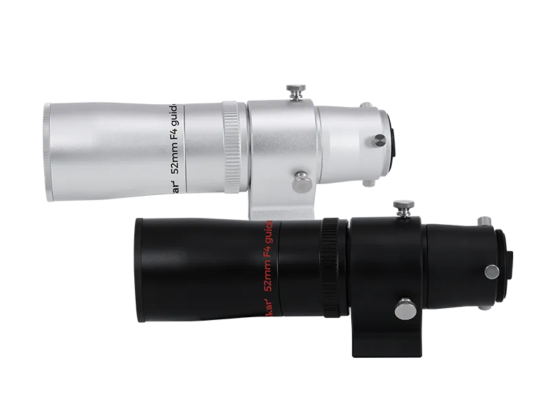 The Askar 52mm F4 Guide Scope features a doublet objective lens design incorporating one piece of ED glass for precise guiding. With a fast f/4 focal ratio and 208mm focal length, it provides excellent light-gathering power in a compact 631g package.