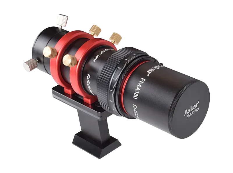 The Askar FMA180 is a groundbreaking optical device that features a triplet air-spaced APO objective with two ED glass elements, providing excellent chromatic aberration correction. It comes with a specially designed 0.8x reducer that transforms it into a 180mm f/4.5 sextuplet astrograph optimized for astrophotography.
