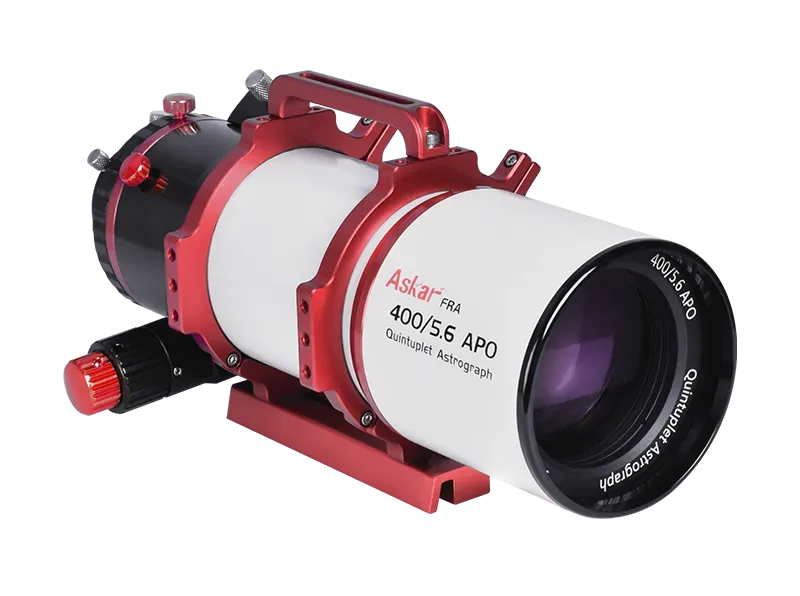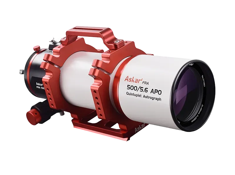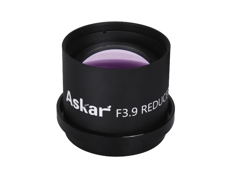 The Askar F3.9 full-frame reducer is designed for both FRA400 and FRA500 astrographs. The 0.7x reduction factor produces a 280mm focal length on FRA400 (350mm on FRA500) at f/3.9, dramatically shortening exposure times for deep-sky imaging. Standard 55mm back focus with built-in M48×0.75 2" filter thread.
