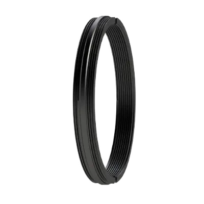 The M48M-M48M-2-mm adapter connects two M48x0.75 female-threaded components and adds 2-mm of optical length. Useful for small adjustments to spacing while linking components like filter wheels and flatteners.