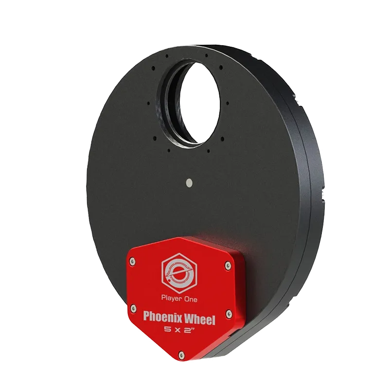 The Player One Phoenix Wheel 5x2″ (PW5-2) is a motorized 5-position filter wheel designed for high-precision astrophotography setups. Crafted from CNC-machined Aluminum 6061-T6, it supports both 2″ mounted and 50 mm unmounted filters with Hall-sensing positioning for flawless alignment.