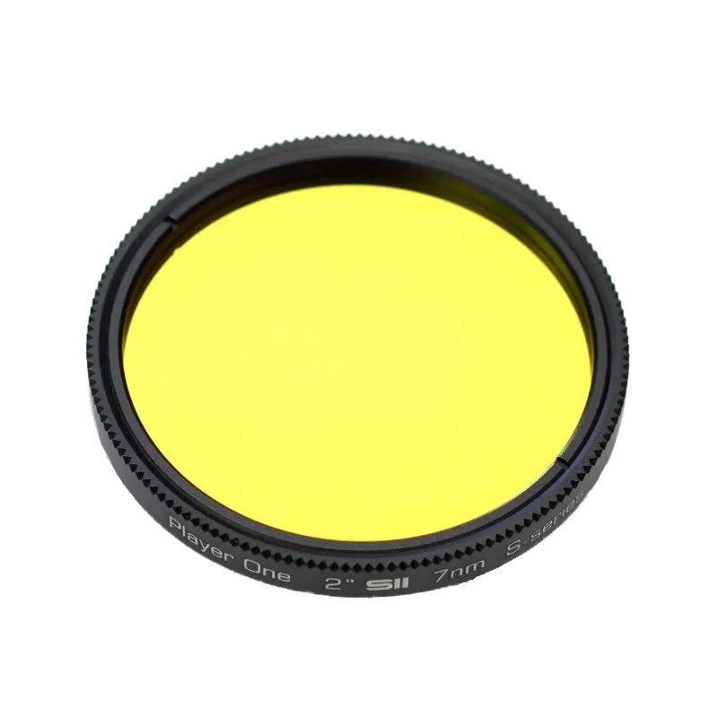 The Player One SII 7 nm 2″ Filter (S-Series) isolates the Sulfur-II emission line at 672.4 nm, enabling high-contrast narrowband imaging of emission nebulae and star-forming regions.