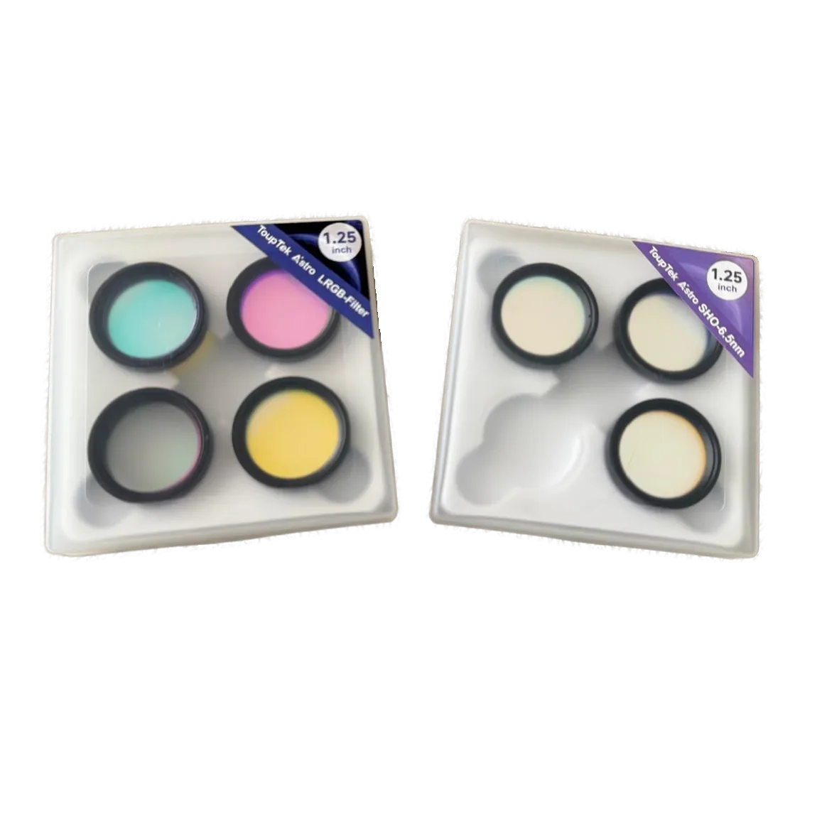 A complete filter kit for both broadband and narrowband astrophotography. This ToupTek set includes LRGB filters for natural color imaging and SHO filters (Hα, O III, S II) for capturing stunning Hubble-palette narrowband compositions. Ideal for use with monochrome CMOS or CCD cameras.